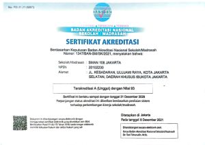Administrasi Sekolah Struktur Organisasi Tata Usaha SMAN 108 Jakarta Administrasi Sekolah SERTIFIKAT AKREDITASI SEKOLAH10 April 2026