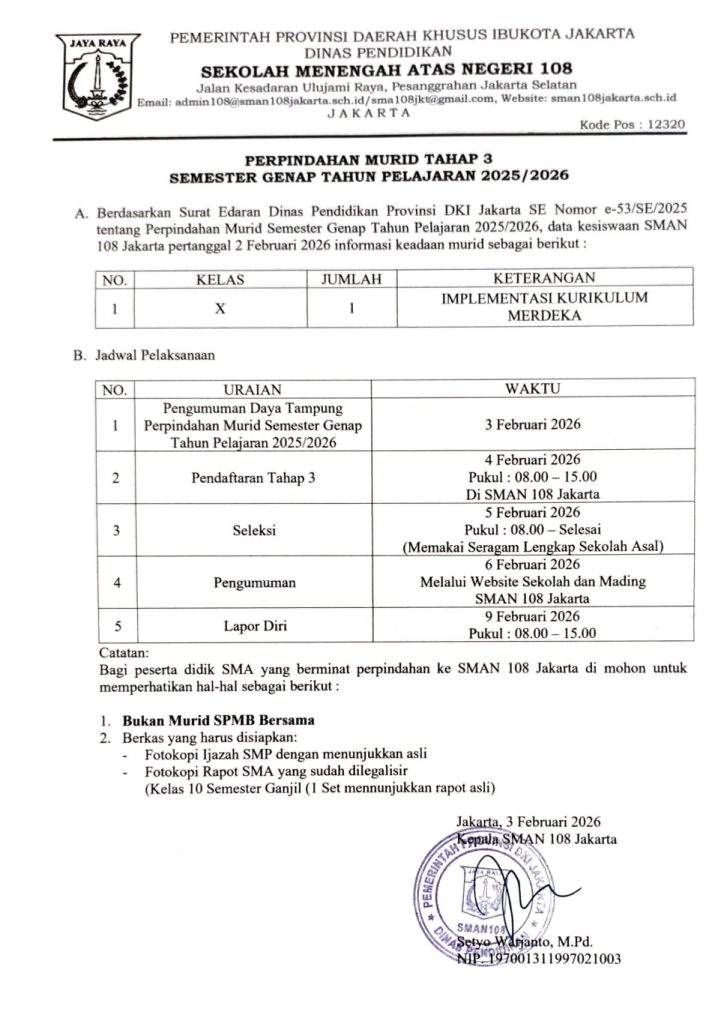 Data Pokok Pendidikan SMAN 108 Jakarta